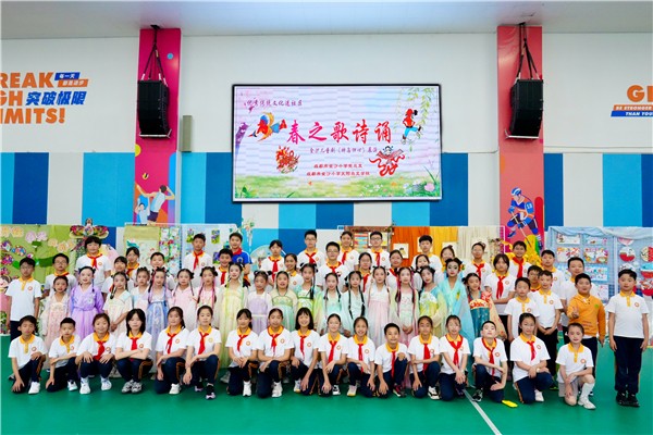 2026年4月10日下午,雨滴在屋檐上跳舞,洒向体育馆的玻璃窗,成都市金沙小学的孩子们,用表演拥抱光阴。D区体育馆里,坐满了家长和老师。雨声如鼓,心却晴朗,一场关于四季与希望的儿童剧,正在这里温暖上演。
