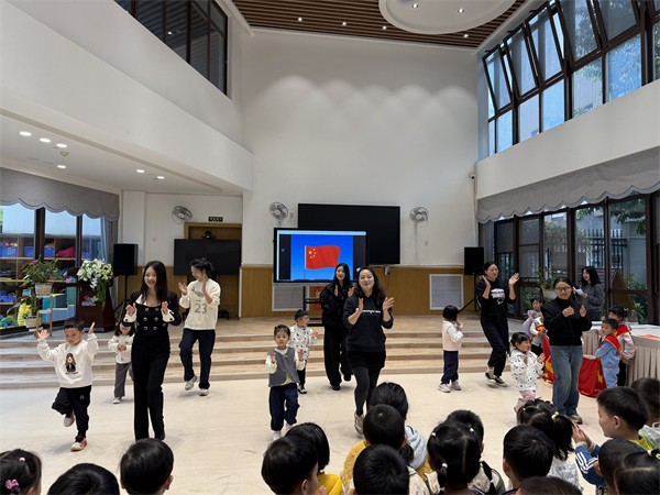 在温馨而充满活力的问候中,小五班升旗仪式正式拉开帷幕。小五班妈妈们共同带来开场舞蹈《兜兜风》,欢快的旋律、灵动的动作,带动全园小朋友一起快乐舞动,可爱十足,现场气氛温暖又热烈。