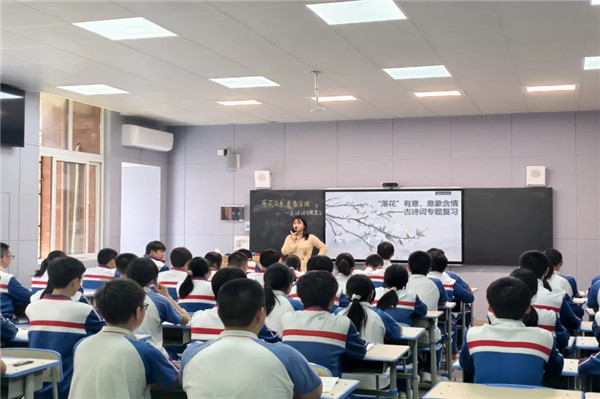 刘丹老师以“飞花令”游戏热身,迅速营造了诗意的课堂氛围,选取了四首诗歌,通过抓关键词描绘画面,深刻体悟“落花”背后诗人不同的心境。课堂层层递进,最终将复杂的诗歌鉴赏凝练为“定意象—品意境—悟情感”的三步答题法。这不仅是应试技巧的传授,更是审美鉴赏能力的提升,带领学生感受一花一世界,一诗一情怀。