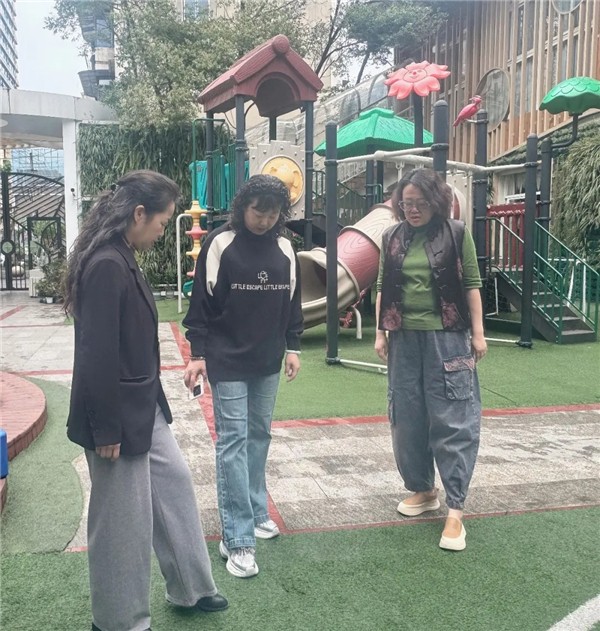随后,杨方宇督学细致巡查幼儿园户外及室内环境,重点排查安全隐患。针对户外轮胎易积水问题,提醒及时清理,做好防蚊虫孳生工作;结合近期多雨天气,强调加强地面防滑巡查与防护,避免幼儿滑倒磕碰,要求幼儿园时刻绷紧安全之弦,细化日常排查,守护幼儿在园安全。