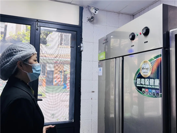 为守护幼儿“舌尖上的安全”,杨方宇督学深入幼儿园食堂,实地查看食堂环境卫生、餐具消毒设备运行、食品留样、食材储存及加工操作等情况,仔细检查明厨亮灶监控运行与各项台账记录,对规范管理、流程清晰等方面予以认可,同时要求持续严守食品安全标准,确保幼儿饮食健康安全。
