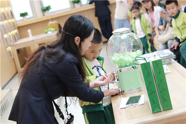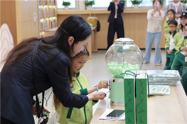 踏入青少年阅读研学中心,“扭蛋寻宝”瞬间点燃了热情。“图书馆多少岁?”“一次能借几本书?”……扭蛋里有趣的知识问答,巧妙解开了孩子们出发前的好奇。