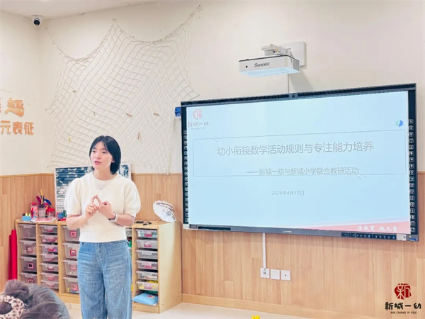2026年4月10日上午,成都市双流区九江新城第一幼儿园与成都市双流区九江新城小学联合开展了第十次幼小衔接联合教研活动,主题为“幼小衔接数学活动规则与专注能力培养专题教研”。