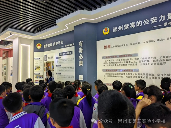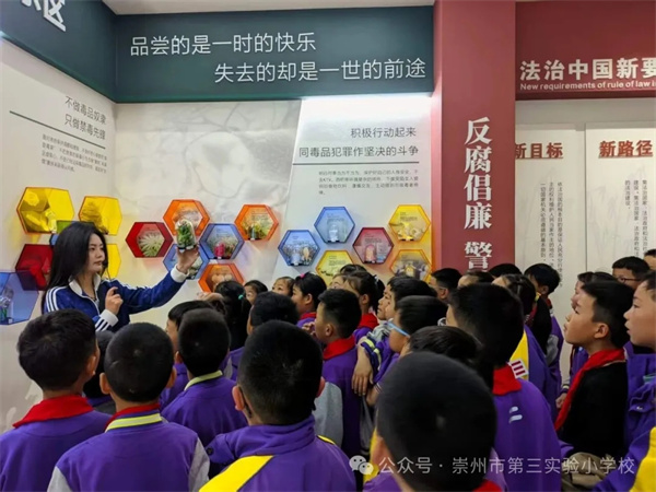 为持续深化青少年毒品预防教育,筑牢校园禁毒安全防线,切实提升学生识毒、防毒、拒毒的意识和能力,4月9日上午,崇州市第三实验小学校学生走进崇州市禁毒教育基地,开展了一场沉浸式的禁毒实践研学活动。
