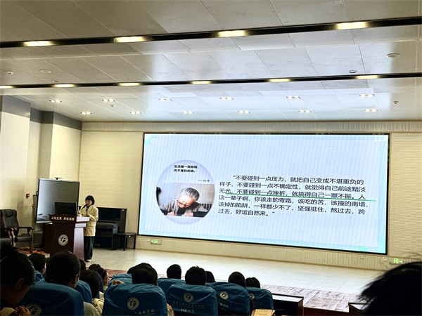 在核心互动环节,刘丽立足学术报告厅场地条件,精心设计了情绪疏导、团队赋能、信心建立等系列室内团辅活动。通过沉浸式情绪分享、集体心理暗示、同伴互助鼓励等趣味且有针对性的互动形式,让同学们在安全放松的室内环境中,大胆宣泄内心焦虑,感受集体陪伴的力量;在互动交流中掌握情绪调节方法,重拾备考信心,筑牢迎战体考的心理底气。
