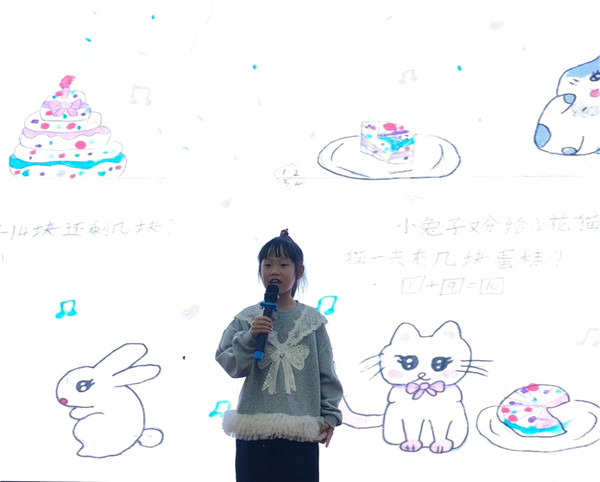 “同学们,你们能用画讲一个数学故事吗?”活动一开始,小主持人们展示了几幅有趣的连环画,画面里藏着加法、减法,还有图形和规律,并宣布一年级数学学科活动正式开始!