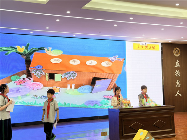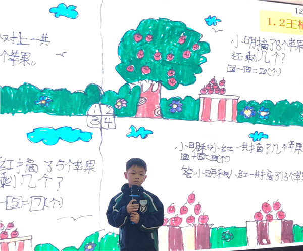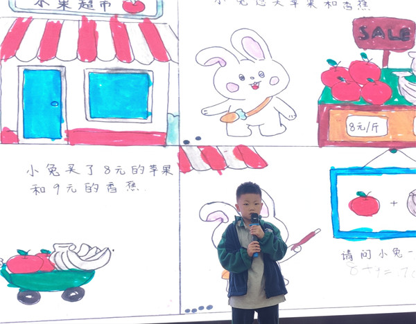 小代表们举着自己创作的连环画,大方地讲出故事里的数学。