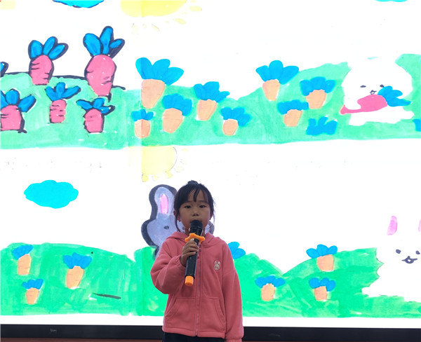 每班先在教室里进行“海选”,最终推选出2名“小小画家”登上展示台。