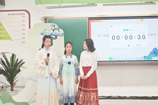 此外,大会还设置了“诗词小能手”和“诗词小达人”颁奖环节,对在比赛中表现优异的选手和团队进行了表彰。在现场互动环节中,师生共同参与飞花令友谊赛,气氛轻松愉快,笑声不断,进一步拉近了师生之间的距离。