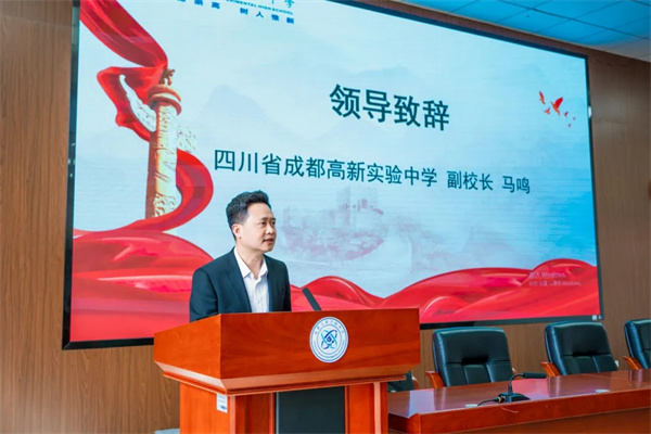 活动伊始,副校长马鸣致欢迎辞,介绍了学校以“原子文化、院士精神、同频教育”为内核,构建“课前聚能筑基—课中同频探究—课后致远赋能”三维闭环教学模式的探索成果。随后,区教研员陈连蜀老师与青年教师王佳欢分享了长征革命文物素材转化为试题的实践案例。