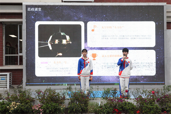 在庄严的国歌声中,五星红旗冉冉升起。全体师生肃立注目,以最饱满的精神状态开启新的一天。六年级2班陈煋垚同学带来精彩的主题演讲,号召同学们以航天精神激励自己,勇敢追梦。