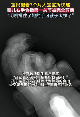 近日,济南。7个月大的宝宝芙芙顺利出院了,不幸被剪断的右手食指第一关节也成功接回。此前,95后妈妈右手抱着芙芙、左手拎着快递,同时用右手握着剪刀拆包裹,不慎一剪下去,鲜血瞬间喷涌而出,很快浸湿了睡衣。楼下诊所医生见状紧急提醒:“快去大医院,一定要把断指找回来!”孩子爸爸随即在沙发缝隙中找到掉落的食指,在交警开道护送下,仅用10分钟便抵达济南市第三人民医院急诊。为如此幼小的婴儿接断指,被称为“显微镜下的极限挑战”,因为婴儿血管太细直径不足0.5毫米,仅为成人的1/5。经过精密手术,断指终于成功“归位”。医生表示,宝宝年龄小,自我愈合能力强,未来手指功能基本可以恢复正常,不影响写字和日常生活,唯一可能存在的后遗症是关节活动度稍受限。
