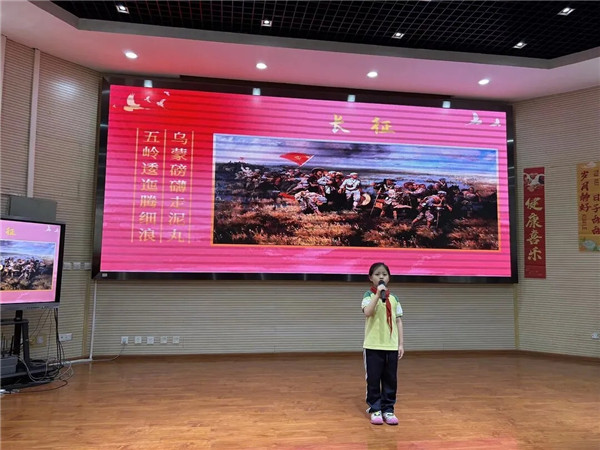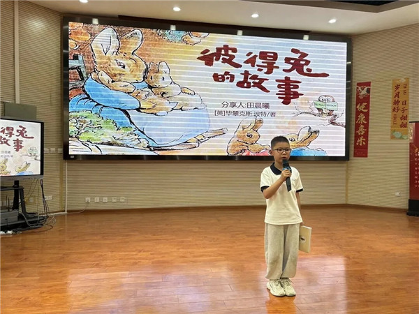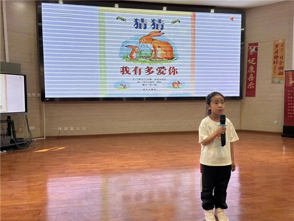 一年级的小同学们带着对阅读的满满热情登场,田晨曦同学分享《彼得兔的故事》;沈沐菡同学讲述《猜猜我有多爱你》;刘纾彤同学带来《少年英雄王二小》的故事。