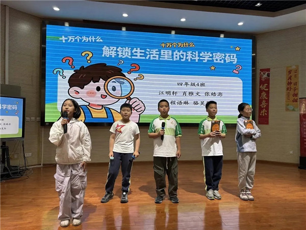 四年级的同学们创意十足,赵梓熙、程梓豪等同学以情景演绎的形式,生动再现《走进〈十万个为什么〉》的趣味知识;何雨芊、熊婉琴等同学演绎《小英雄雨来》,重现经典故事的热血与感动;唐艺涵、曾子涵等同学演绎《绿野仙踪》,带领大家走进奇幻的童话世界;江明轩、肖雅文等同学以创意讲述解读《十万个为什么》里的生活科学密码,用沉浸式的分享让阅读更具感染力。