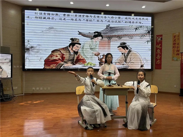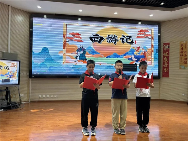 五年级的同学们在分享中尽显深度,王嘉毅、杨忬昕等同学分享《西游记》与《二月谣》;段正豪、罗佑展等同学以情景演绎再现《将相和》的经典桥段;冯文俊、芦柯丞等同学创意讲述《西游记》;李芮萱、陈妤茉等同学解读《三国演义 煮酒论英雄》。同学们在经典名著的分享中,传承文化经典,感悟历史底蕴。
