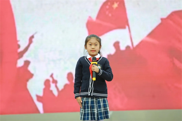 升旗仪式上,二年级5班同学带来思政微课《海娃》,用生动的语言传递红色精神、厚植爱国情怀。二年级16班同学倾情演绎银杏之声《小小的书籍 大大的梦想》,以灵动的表现传递阅读力量、诉说成长期许,赢得在场师生的阵阵掌声。