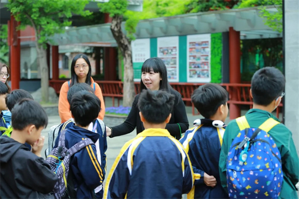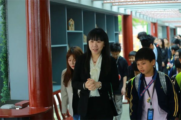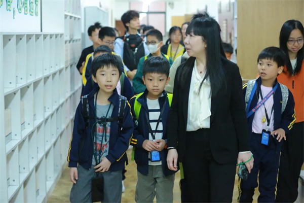升旗仪式结束后,在校长闫瑾和老师们的带领下,香港师生沉浸式感受校园风貌,深入了解学校环境创设的特色理念。