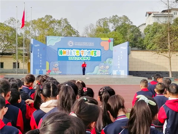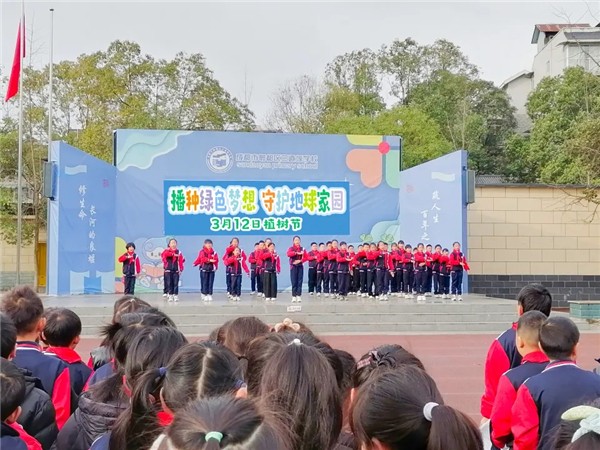 近日,成都市郫都区三道堰学校举行庄严的升旗仪式,该校四(1)班(萤火虫班)全体同学承办国旗下表演,以“守护地球家园 播种绿色梦想”为主题,传递环保理念,展现班级风采。