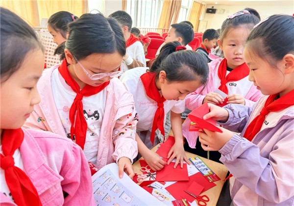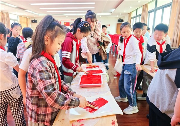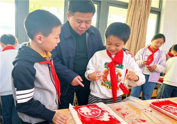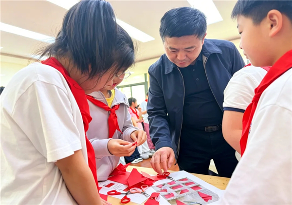 活动现场,校长也来到孩子们身边,耐心陪伴、温柔指导,和大家一起体验非遗手工,倾听红色故事,鼓励大家勇敢尝试、大胆展示。