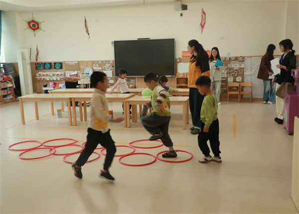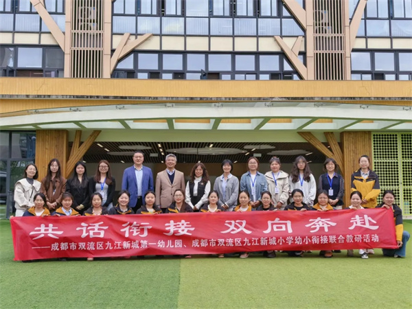 4月14日上午,成都市双流区九江新城小学新一批储备教师在林家锐校长、王跃明校助、涂春芳主任的带领下,一同走进成都市双流区九江新城第一幼儿园大班活动现场,以“研教学异同,促幼小衔接”为主题,聚焦生活、运动、游戏、学习四个核心板块,开展了一场半日观摩交流活动。九江新城一幼龚丽丽园长、程晨助理携教师团队全程参与,共同呈现并探讨大班幼儿的半日生活组织与教育实践。半日观摩、一场对话,让“儿童”与“衔接”有了全新的理解。