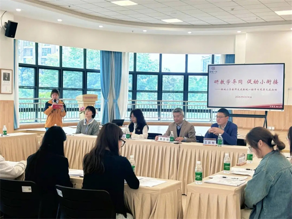 九江新城一幼教师代表在发言中表示,幼儿园教育具有整合式、生活化的特点,课程内容围绕主题进行有机融合;而小学教育则采用分科教学,以课时为固定单位组织教学。教案设计方面,幼儿园更强调结合幼儿的年龄特点与发展规律,注重游戏化与体验性;小学则依据课程标准,围绕学科知识体系与整体教学目标进行设计。