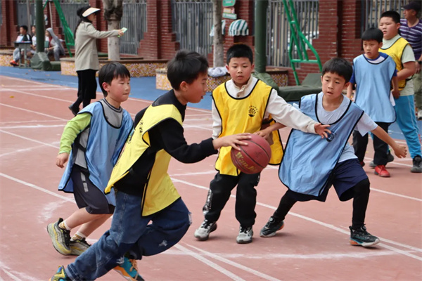 低年级开展趣味投篮与运球接力,孩子们踮脚投篮、奋力拍球,在欢声笑语中感受运动乐趣,播撒运动种子。