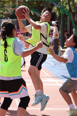 三至六年级进行3V3篮球对抗赛,队员们突破、传切、配合,每一次拼抢、防守与投篮都展现出昂扬向上的精神风貌,赛场气氛热烈非凡。