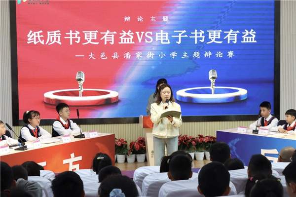 4月21日中午,作为第八届槐园书香节系列活动的重头戏,一场以“纸质书更有益还是电子书更有益”为主题的辩论赛在大邑县潘家街小学四楼学术厅精彩上演。来自各年级的辩手们围绕阅读载体的时代之问展开激烈交锋,呈现了一场逻辑与口才并重、传统与现代对话的思维盛宴。