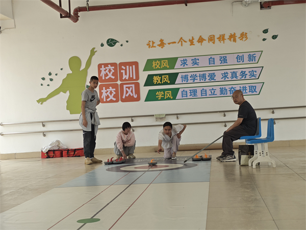 本次赛事由成都市残疾人联合会主办,采用单淘汰赛制,赛程紧凑、对抗性强,是全市残疾人旱地冰壶项目的高水平比拼。为备战此次比赛,崇州特校的孩子们在老师的专业指导下开启系统化训练,从握壶姿势、发力控制到线路预判、团队战术,每一个细节反复打磨,每一次配合不断优化。训练场上,他们不畏艰辛、坚持不懈,用汗水与毅力诠释着自强不息、永不言弃的体育精神。