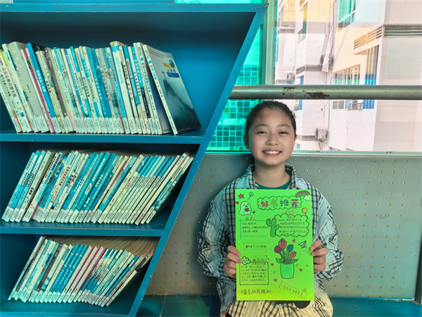 B区开展了“墨香满校园,书香润童心”好书推荐卡制作活动,让孩子们在动手与动脑中邂逅书香之美。孩子们充分发挥想象力与创造力,用彩笔、卡纸、贴纸等工具,图文并茂分享阅读感悟。每一张推荐卡都独具匠心,色彩搭配和谐美观,文字书写工整规范,既展现了孩子们的审美能力与动手能力,更传递出他们对阅读的热忱。