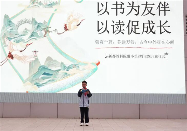 2026年4月20日,迎着春日暖阳,伴着淡淡书香,成都市新都区教科院附属小学校举行“以书为友伴 以读促成长”主题升旗仪式。在世界读书日来临之际,全校师生共赴一场与经典、与阅读的美好相遇,共同拉开第五届读书节的帷幕,让书香浸润校园,让阅读点亮童年。
