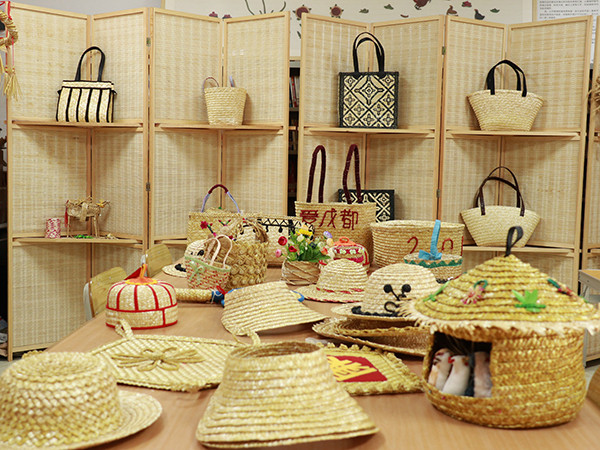 “除了传统的草帽、扇子、提篮,现在还有可爱的熊猫包、精美的装饰画呢!”看着琳琅满目的现代文创产品,同学们发出阵阵惊叹。