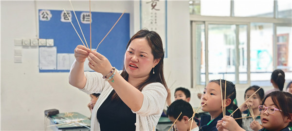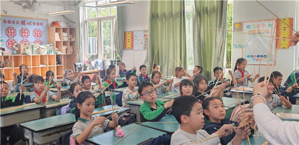 在互动提问环节,同学们化身“十万个为什么”,面对谢妈妈的提问,大家踊跃举手,气氛热烈非凡。在一问一答中,非遗的种子已在孩子们心中悄然发芽。