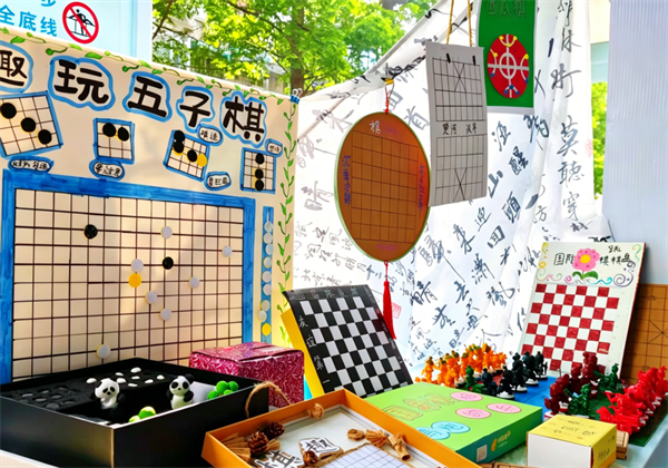 以棋盘为媒,以劳动为乐。全校同学化身小小棋盘设计师,用废旧纸箱、木板、布头、石头、黏土等材料,精心打造属于自己的创意棋盘与棋具。
