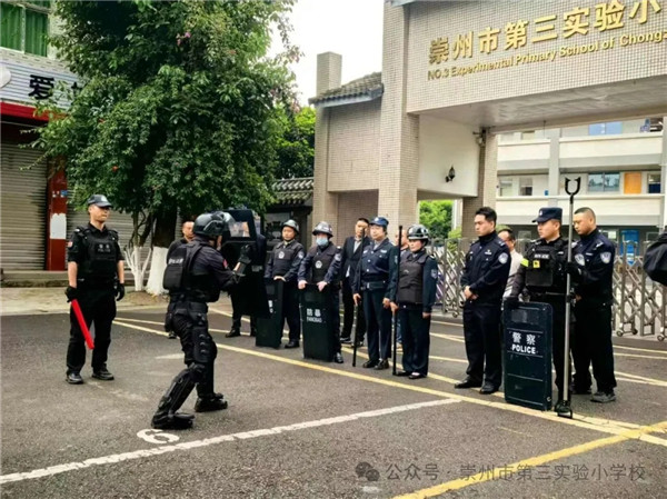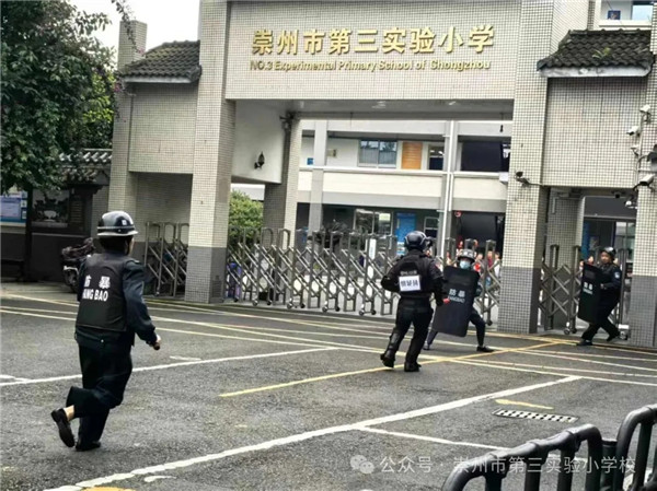 为进一步强化校园安防管理,切实提升全校师生面对外来危险人员闯入时的快速避险、自救互救和协同处置能力,筑牢平安校园安全防线,4月22日,崇州市第三实验小学校与崇州市特警大队为全体师生、校园安保人员开展危险人物冲撞校园专项防暴应急演练。