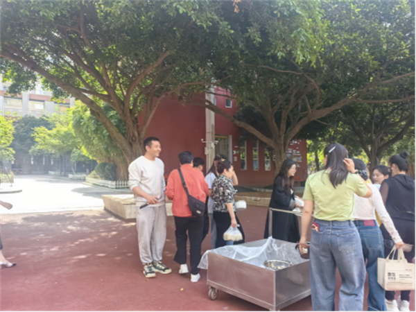 活动伊始,老师与家长志愿者们便早早忙碌起来。清洗、整理新鲜食材,和面、调馅、分发工具,将饱满的馅料、光滑的面皮一一摆放整齐。大家分工协作,推着餐车穿梭在校园里,为后续的制作环节做好充足准备。干净整洁的操作台、琳琅满目的原材料,每一处细节都藏着对活动的用心,也为这场手作之旅拉开了温馨的序幕。