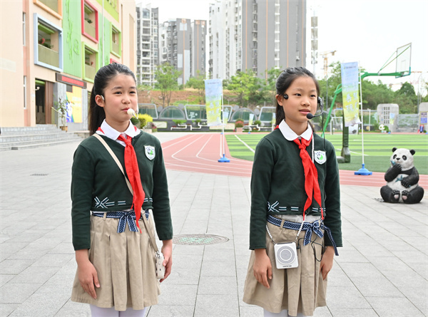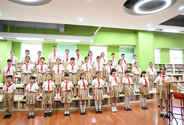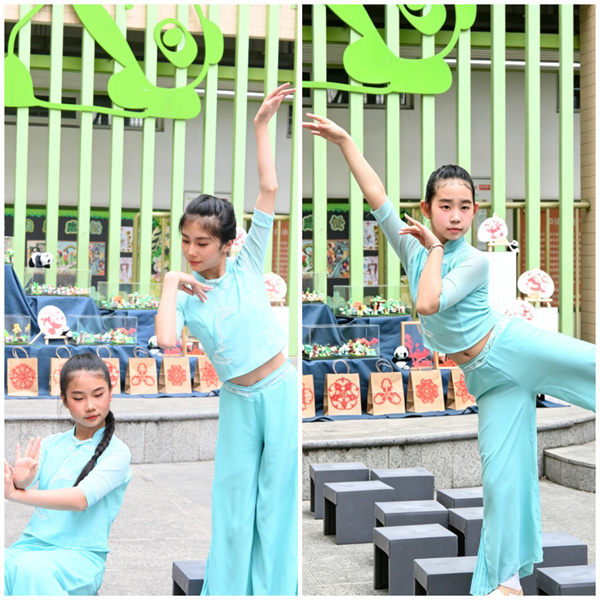 清水湾小学师生踏入校园,跟随着双语小导游的讲解参观了精美的艺术展区和美丽的校园。熊猫萌娃们的集体舞表演,展现的精湛技艺赢得满堂喝彩。静静聆听着童声合唱,两校学子的心在熟悉的旋律中慢慢贴近。