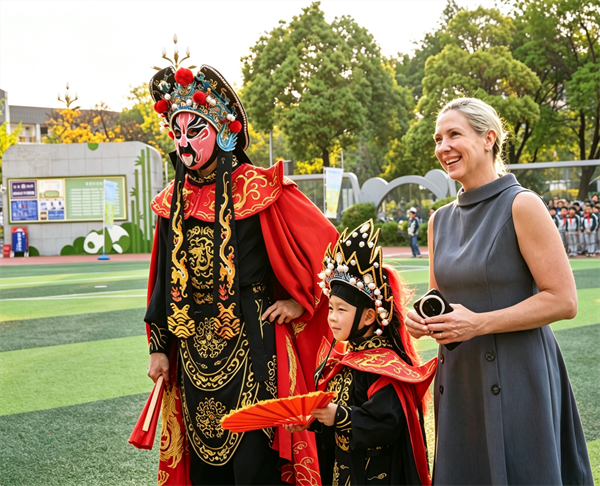 一堂趣味英语课,一张精美川剧脸谱,让文化交流在笔尖绽放。同学们手持画笔,大胆配色、创意描绘,一边用英语交流心得,一边用心勾勒属于自己的特色脸谱。