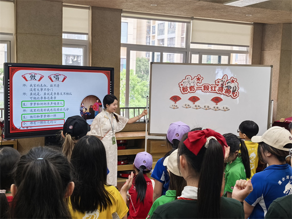 远道而来的香港小朋友和自己在成都的小伙伴热情“相认”,互赠礼物。学生的剪纸作品作为礼物赠送给远道而来的姊妹校,它承载着熊猫路小学对远方来客的热忱欢迎。