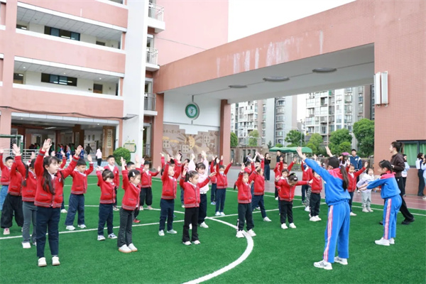 在体育课上,大家一起奔跑、游戏,在操场上尽情感受运动的快乐。