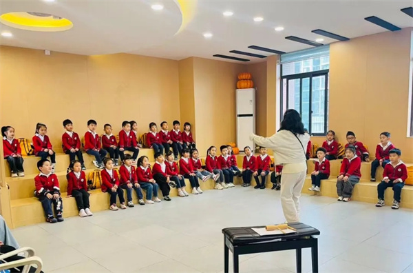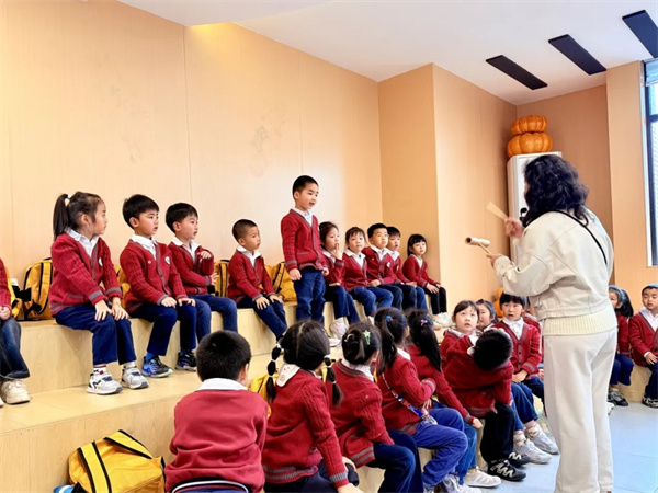 在音乐课里,动听的旋律、欢快的节奏,让小小的心也跟着轻轻舞动。