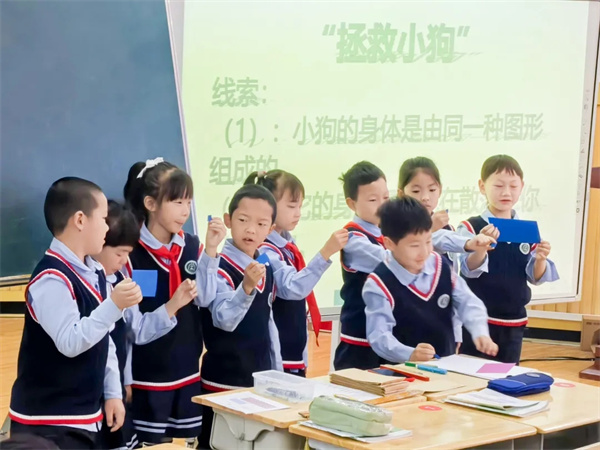 结合一二年级教材内容,刘巧林老师精心准备了一堂《图形王国》课例展现给大家。她立足低段学情,巧妙创设童趣化游戏。从“你说我猜”到“拯救小狗”再到后面的“搭一搭”,每个游戏化环节的设计不仅紧扣数学本质,更让每个孩子都主动参与。通过借助小组互说、集体交流、思路分享,实现了互动思辨;通过梳理规律、概括方法、建立模型,完成了知识建构。