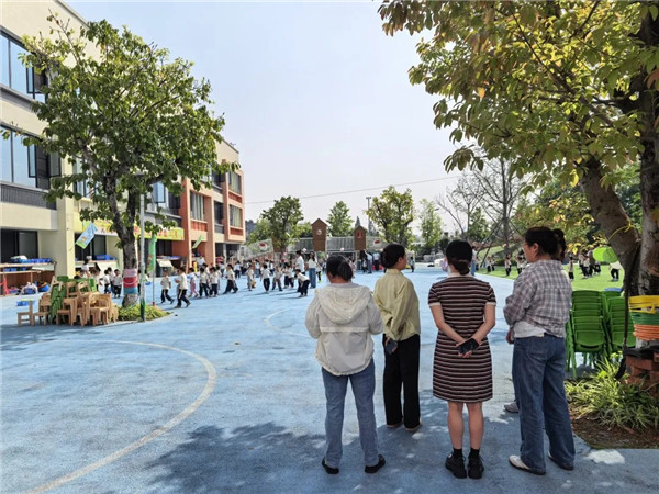 研修期间,跟岗老师们深入各班级,观摩幼儿学习活动、室内游戏、户外游戏与生活环节,她们认真观摩、记录,围绕一日生活环节的组织等与川大江安幼儿园教师进行交流。