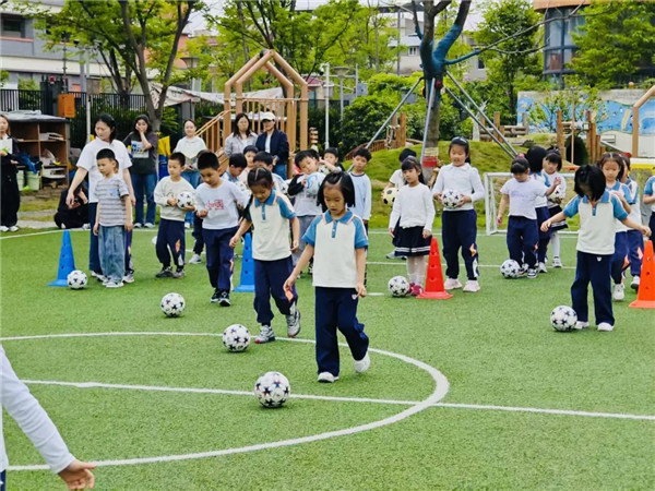 跟岗教师们现场观摩了体育教学活动,将科学的活动设计理念与现场实际教学活动进行融合,深化了体育教学实践认知,助力专业能力成长。