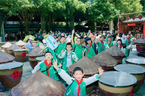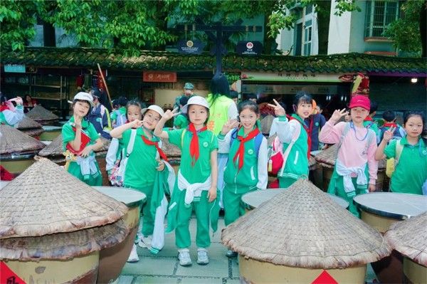 1-3年级的“小小美食家”们率先抵达川菜博物馆——这座全球唯一的川菜文化活态博物馆,瞬间被浓郁的川味文化包围。在典藏馆里,大家围着汉代陶灶、清代筵席器具等珍贵文物认真聆听,探寻川菜三千年发展脉络,解锁“尚滋味,好辛香”的饮食密码,完成趣味十足的“文物寻踪”任务。