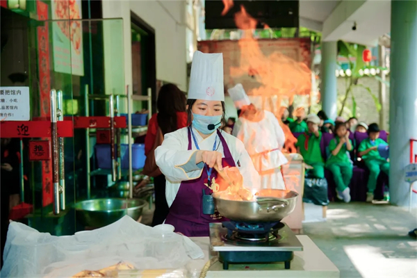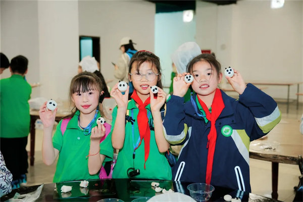 动手时刻,大家化身“巧手小厨神”,认真学习和面、擀皮、塑形,做出一只只圆滚滚、憨态可掬的熊猫蒸饺;协作制作“三大炮”时,“砰砰”的声响与欢笑声此起彼伏,舌尖上的美味与劳动的快乐交织在一起。午餐时分,二十余种地道川味小吃不限量品尝,鱼香、麻辣、蒜泥等丰富味型,让大家真切体会“一菜一格,百菜百味”的独特魅力,在品尝中学习餐桌礼仪,懂得珍惜粮食、尊重劳动。
