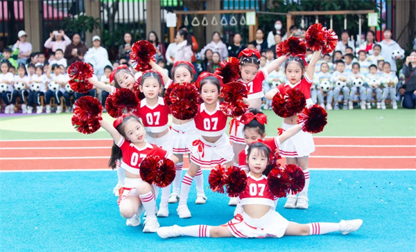 随着活力满满的师幼联演和热血温暖的爸爸足球赛的进行,运动会正式拉开帷幕。师幼联演的啦啦操表演燃爆全场,孩子们和老师们共同展现了运动的激情与魅力。而爸爸足球赛则成为了全场的焦点,爸爸们身手矫健,为孩子们树立了勇敢拼搏的榜样。