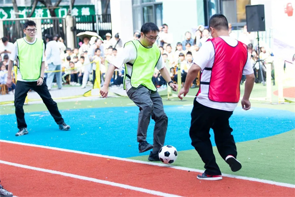 亲子游戏环节更是将运动会推向了高潮。春风牵着小手,足球连着童心,家长和孩子们在火炬传递、足球奔跑等游戏中默契配合,共同享受运动的快乐。大手牵小手,一起跑、一起笑、一起闯,每一次亲子互动都成为了童年里闪闪发光的小美好。