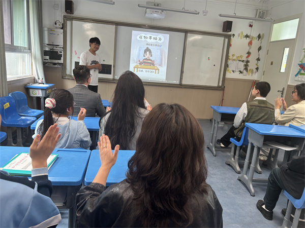 在班级老师的组织和引导下,志愿者们与孩子们互相问好、逐一自我介绍,随后两两结对。紧接着,大家通过律动游戏破冰,在欢快的节奏中互动,拉近了彼此的距离。