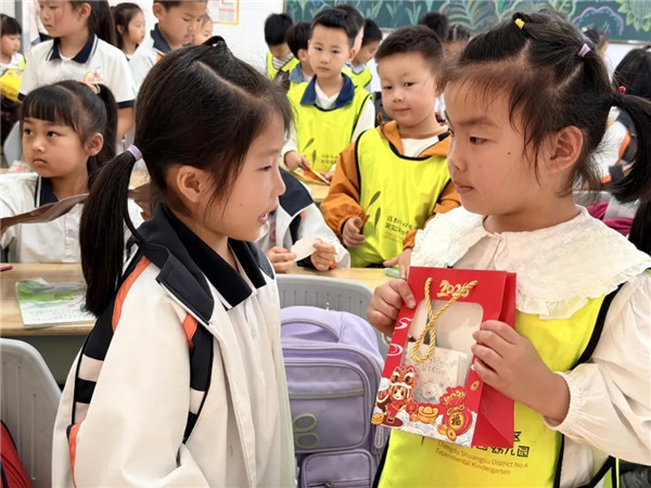 美好的时光总是短暂的,离别之际,孩子们与哥哥姐姐互相赠送用心制作的礼物,这些充满爱意的小礼物,是友谊的见证,也是送给彼此最温暖的祝福。